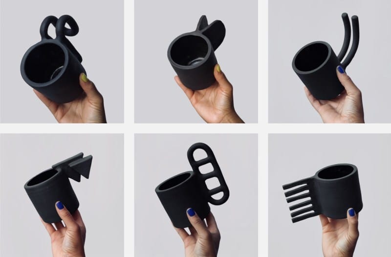 All made in a trademark matte black, her mugs embrace a modern, geometric sensibility, yet also veer into the marvelous, ridiculous, and wild, as the 100 day challenge went on.