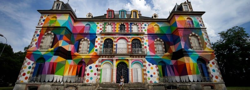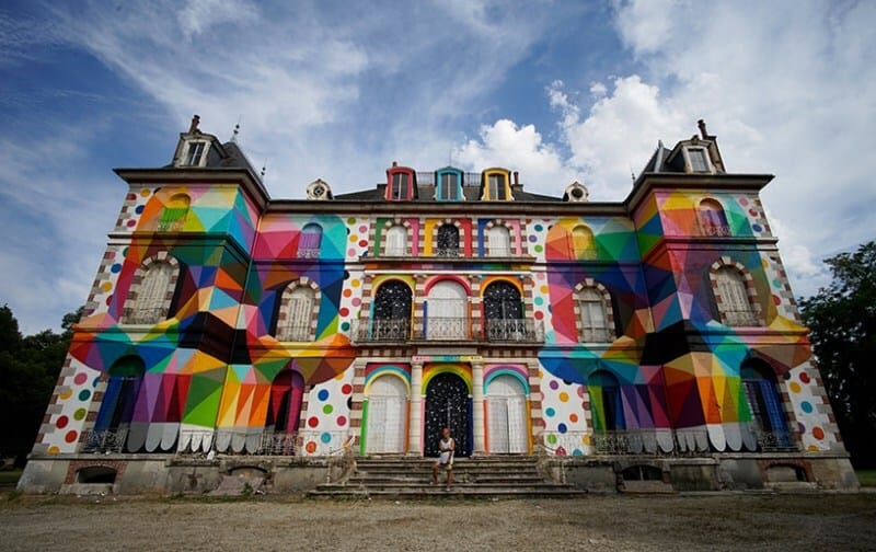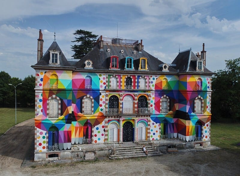 This 19th century castle never saw it coming. Artist Okuda San Miguel took his paintbrush and went crazy on the castle, creating an eye-popping display of color, shape and pattern. After sitting vacant for more than 30 years, the castle is seeing new, colorful life. Part of an art festival in France, Château De La Valette will never be the same. Via DesignBoom: