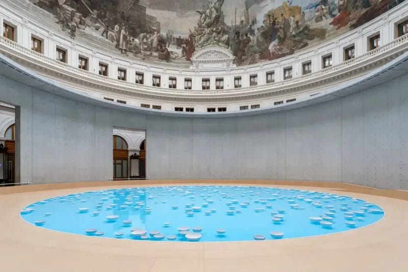 Céleste Boursier‑Mougenot’s installation clinamen has transformed the rotunda of the Bourse de Commerce into an immersive, musical oasis.