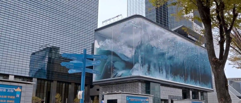 Considered the largest anamorphic display in the world, the building is entirely cladded in digital screens that can change the building like a chameleon. Combined with sophisticated physics and sound, the wave illusion is a stunning design, sure to grab the attention of anyone in the vicinity. It shows the potential of digital signage in the future, able to create truly surreal experiences in our built environment. Via DYT: