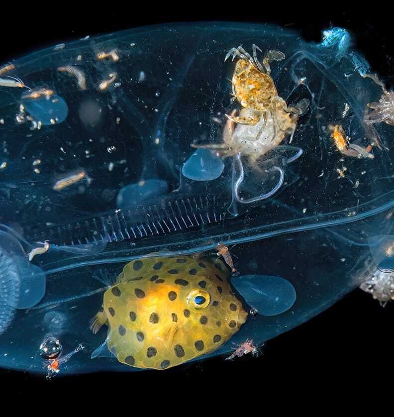 The result is a swimming smorgasbord wrapped in glassy flesh. It is a little cruel and strangely gorgeous at the same time, a reminder that the “empty” ocean is crowded with tiny lives, and that sometimes a single mouthful of sea carries an entire world inside it.
