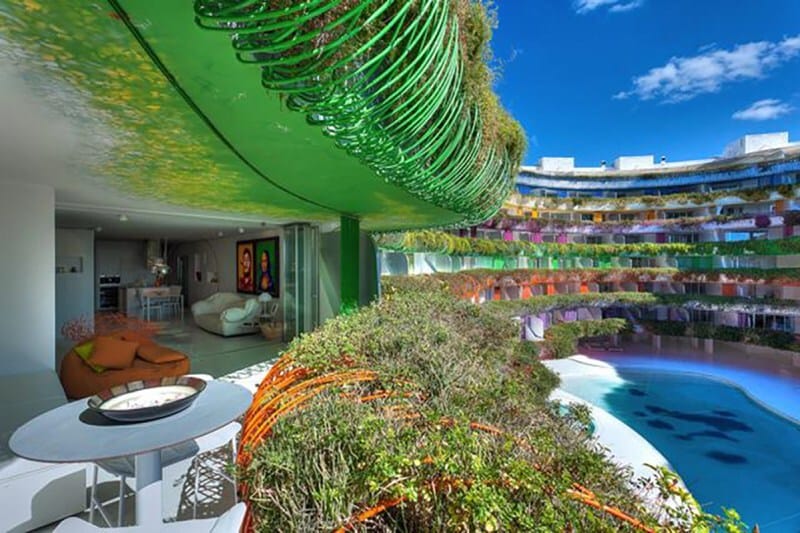 Ibiza has become notorious for being a party town in Spain. Having not been there, we can’t report directly, but the new Ibiza Glam doesn’t seem to refute that reputation. With a rainbow colored series of railings that double as planters, the hotel’s exterior positively radiates fun, festive, and party-friendly. Part of the Cream Hotel series, this pricey spot is sure to win over fans with it’s radiant color. Via DesignMilk: