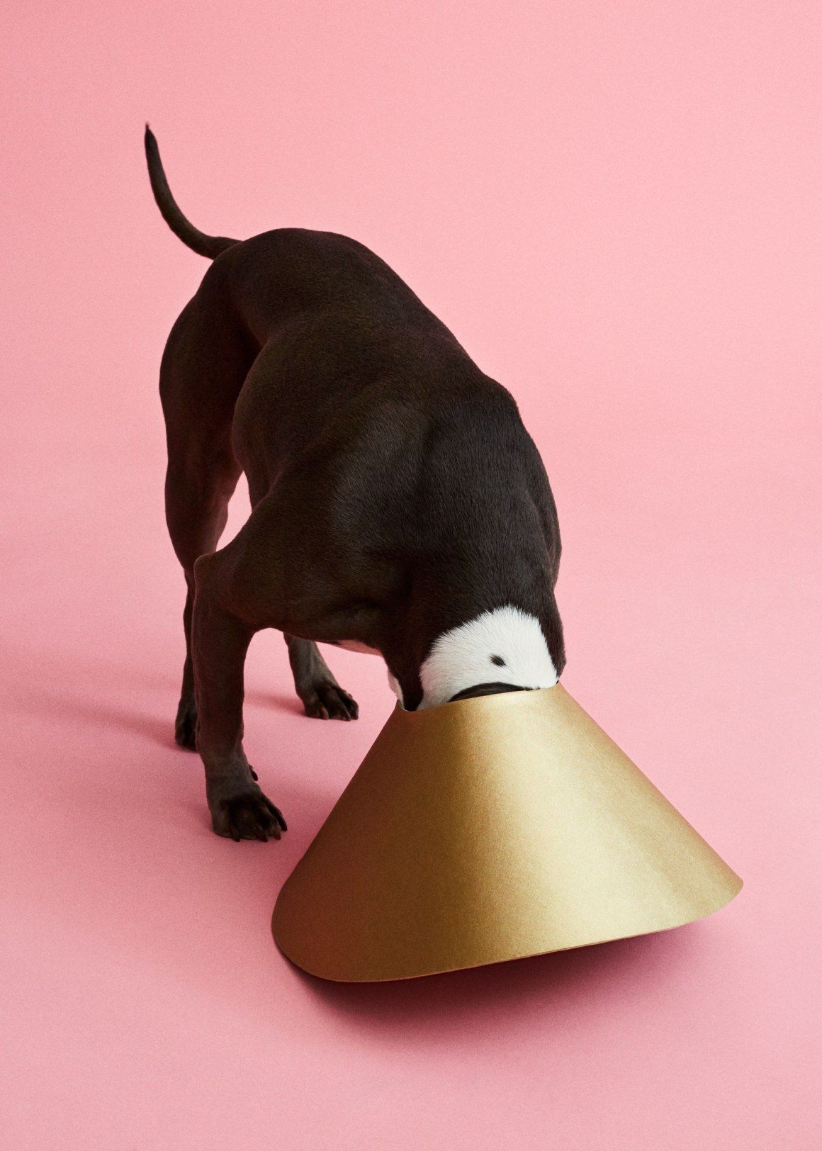 Photographer Winnie Au has flipped this concept on its head, with a series that showcases ‘cones of shame’ that are glammed out, made from all manner of unique and fancy materials.