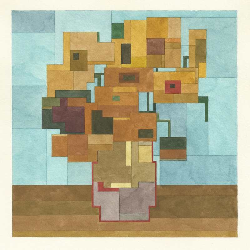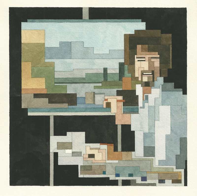 If there’s a master of 8-bit art, Adam Lister would be the candidate. Taking famous works of art and recreating them in simplistic Nintendo-esque graphic form, his paintings are done in watercolor and have a strangely warm and human quality, despite them being chunky and blocky and sometimes hard to decipher. Via Colossal.