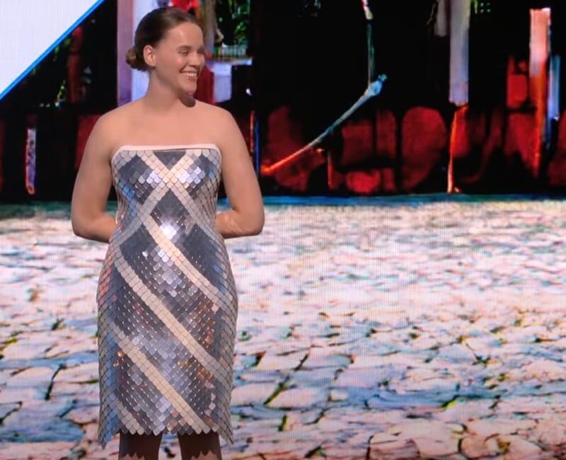Christine Dierk took to the stage and wowed the audience by modeling the dress herself, showing how the patterns can instantly change or even animate to create fluid, dynamic looks.