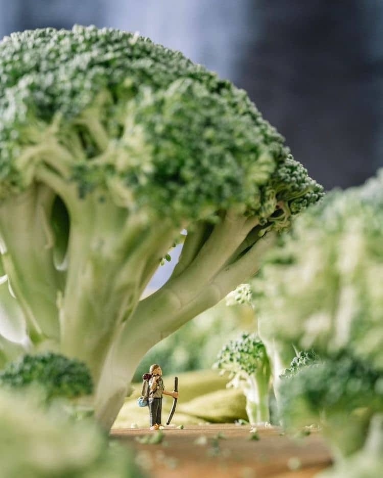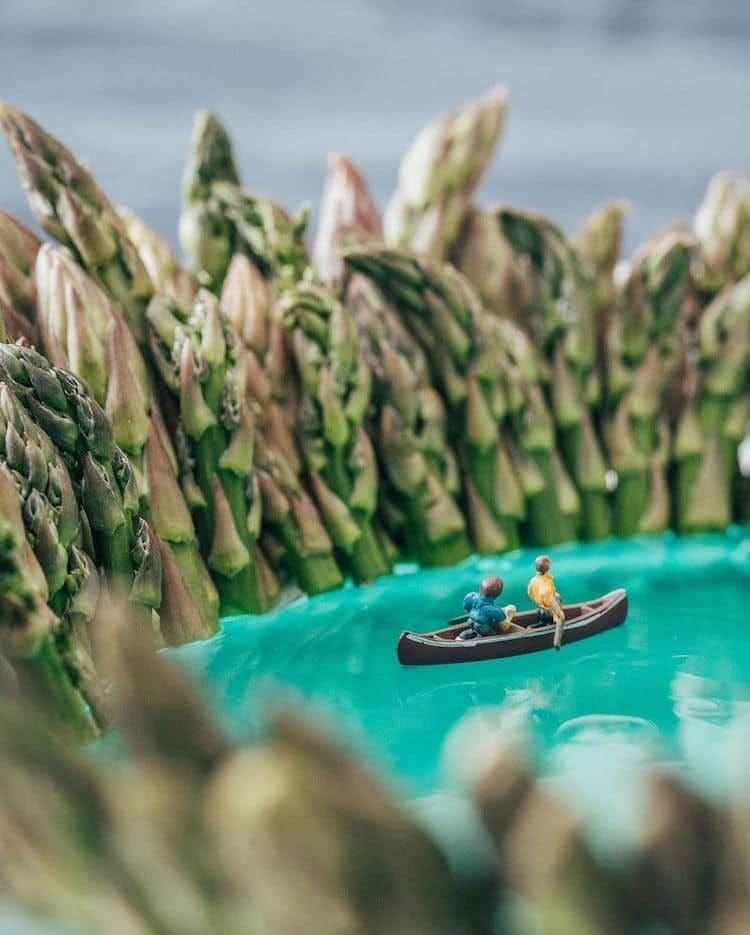 We love the way miniatures can transform you and your perspective, using ordinary items. Take a journey below through a broccoli forest, a snowy rosemary woods, and an aquamarine lake lined with asparagus trees. Via MyModernMet:
