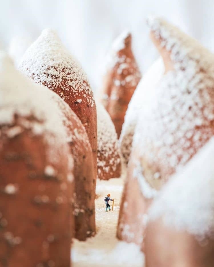 When a travel photographer gets quarantined for months on end, real cabin fever sets in, and they’ve got to get creative. That’s the case with Erin Sullivan, who runs the website Erin Outdoors. Her long stint inside has led to a project called Our Great Indoors, which is an exploration of miniatures, set amongst creatively staged foods and household items.