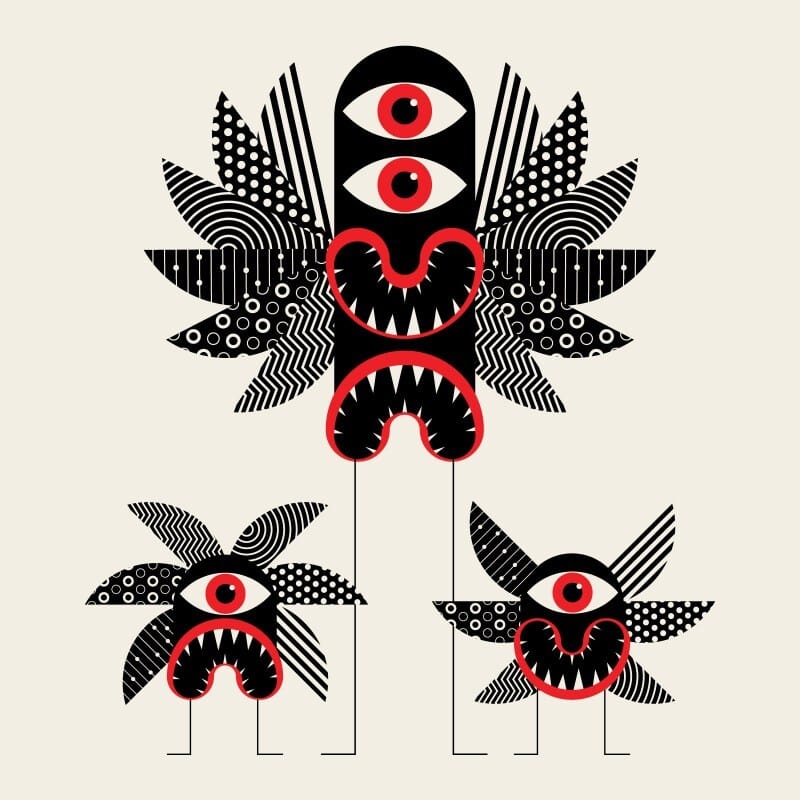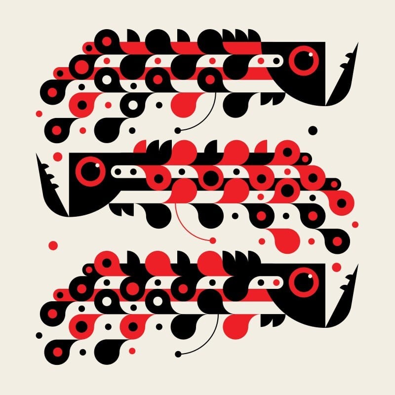 TRÜF Creative has a colorful and fun series called Animals Strike Curious Poses that explores stylish creatures and wild monsters. The restricted red and black color palette make for a unique aesthetic, and the prolific collection is fun to explore. Via Behance: