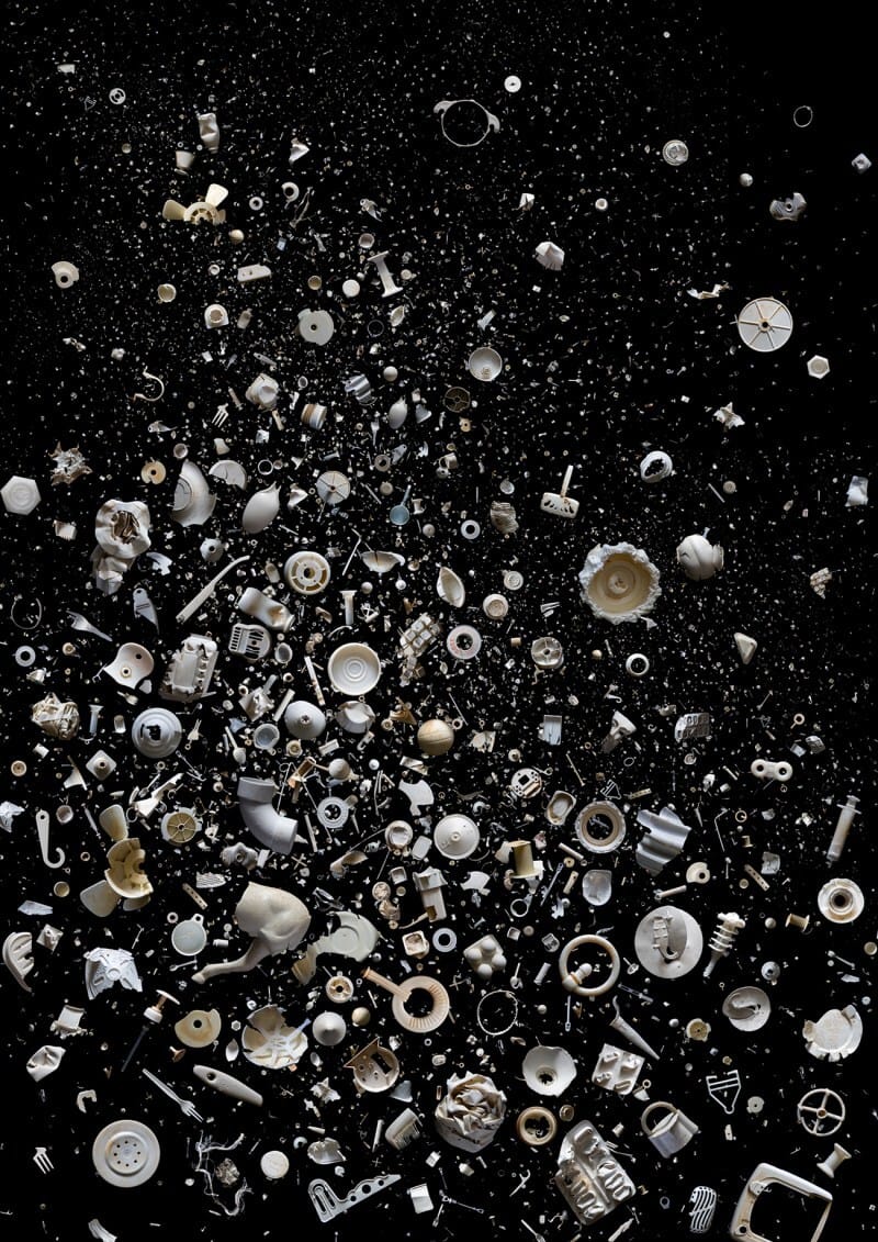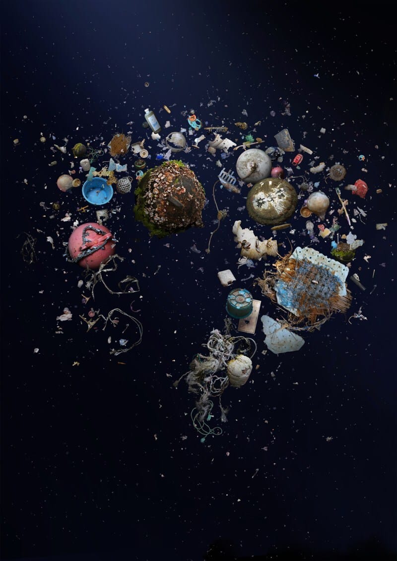 Her work is beautiful in composition, found trash items manipulated in Photoshop to appear as they might underwater, swirling and grouping like a plastic school of fish. It’s devastating to think that our once pristine seas and beaches have been infiltrated by massive amounts of plastic waste, polluting our world on a global scale. Aside from sullying views and beaches, the plastic particles ensnare and are eaten by wildlife, causing massive die-offs. Barker showcases some of these scenarios with equal parts documentary eye and ironically named art pieces. Her work is on display at a number of galleries and museums around the world, hopefully opening the eyes and brains of viewers to this monumental problem. Via Colossal: