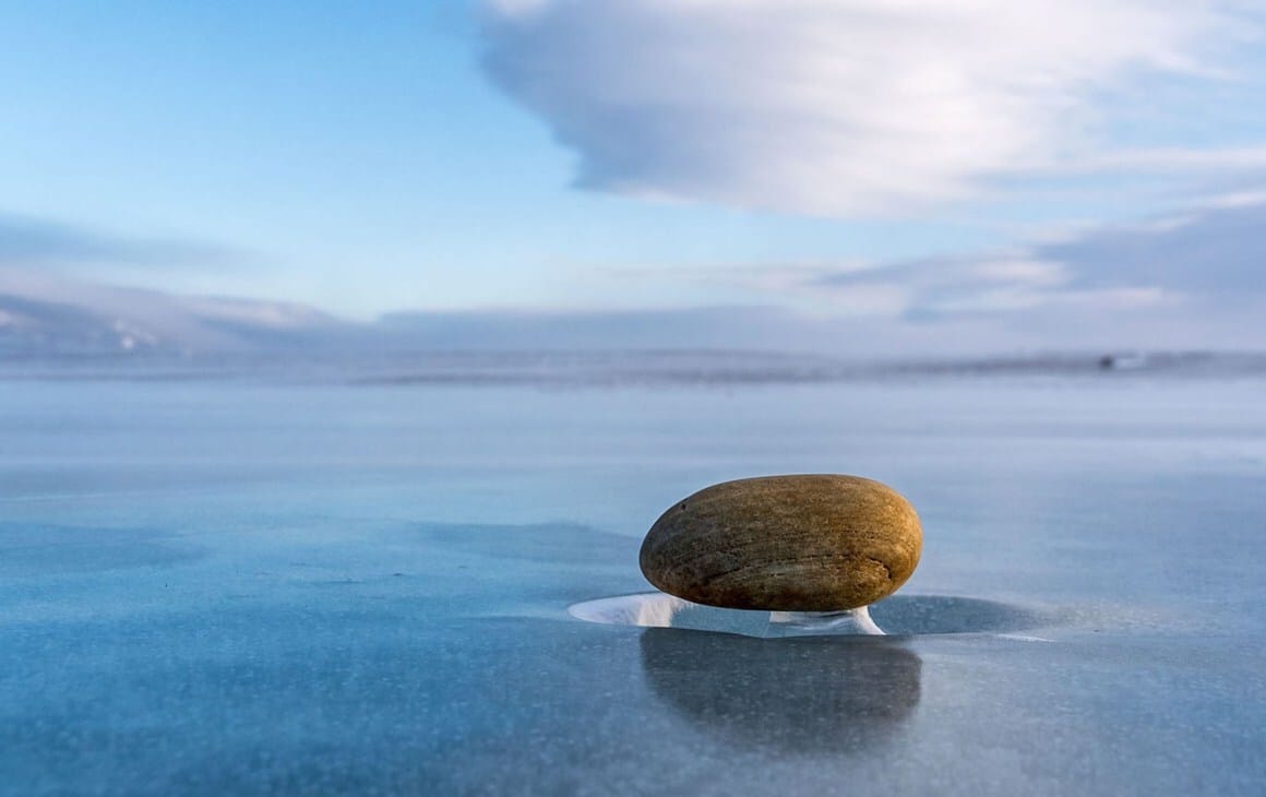 Delicately balanced on frozen pedestals, these stones form an enchanting display known as Baikal Zen. This natural phenomenon occurs on the icy expanse of Lake Baikal, the world’s deepest lake, where strong winds sculpt the ice beneath the stones over time, leaving them perched in serene harmony.