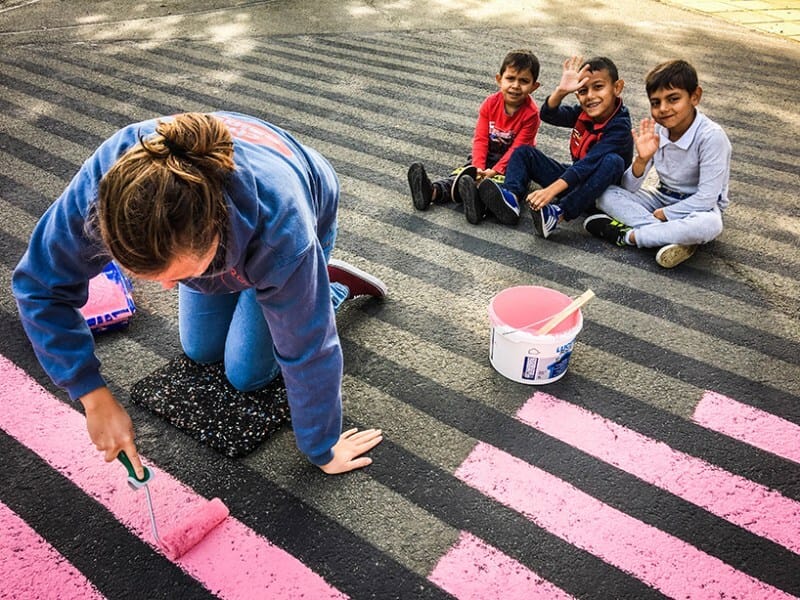 Located between a school and a center for youth refugees, the court is sure to bring kids together to play.