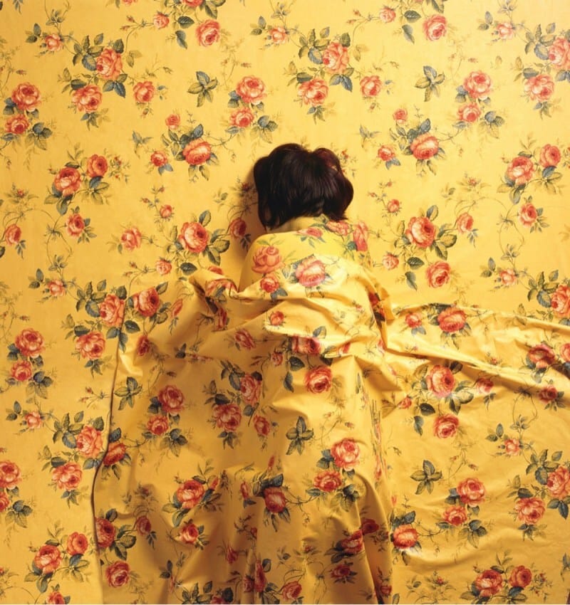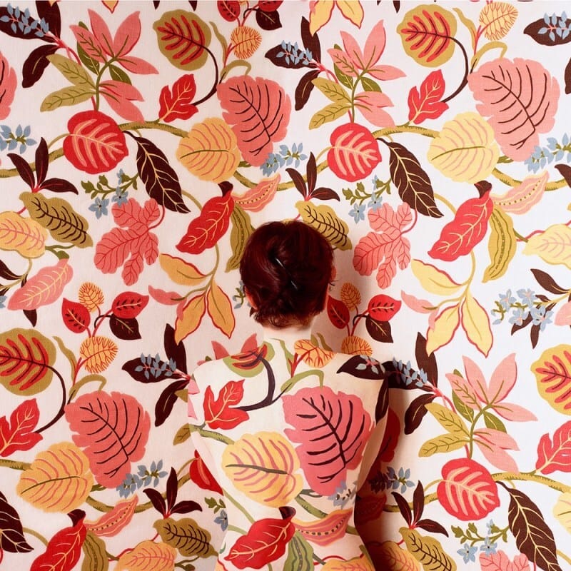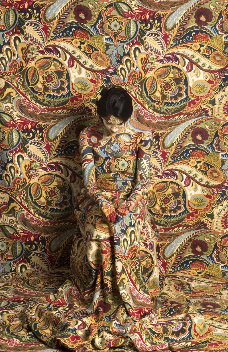 Artist Cecilia Paredes has a gorgeous series where she creates self portraits, with a twist. She’s hidden herself in plain sight, using elaborate patterns of cloth, fabric, paint, and tapestries to hide everything but her head.