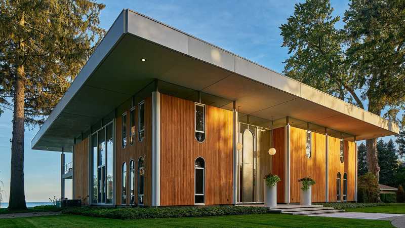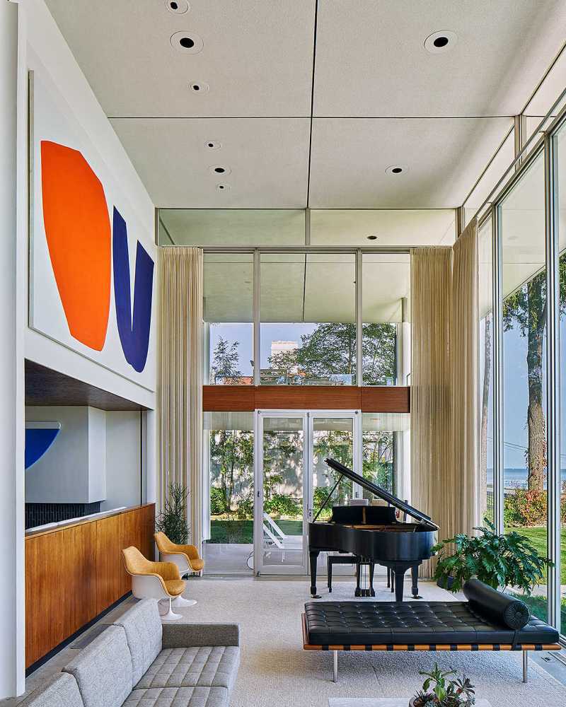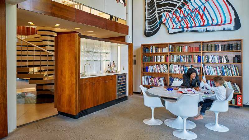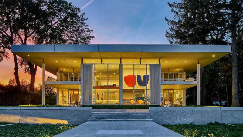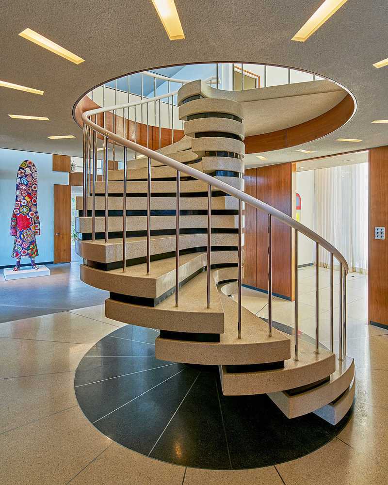 Grosse Pointe, Michigan, is just outside of Detroit, and is home to a number of classic architectural gems, from the heyday of the automotive industry’s boom. Some of these have been preserved, but others had been left to decay, due to the region’s economic changes. Thankfully, some of these classic homes have recently been bought and restored to their former glory, like the W. Hawkins Ferry House. Designed by William Kessler in 1963, the beautifully clean-lined structure was home to an amazing art collection, including works by Picasso and Rothko. A younger couple bought it in 2015 and spent considerable time and money restoring all aspects of the house, from a lakeside patio to a gorgeous terrazzo spiral staircase. Really lovely home, and great to see an architectural classic restored. Via The National Trust for Historic Preservation: