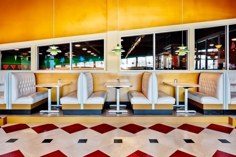 Built in a former K-Mart, the over-the-top retro design feels just nostalgic enough while also being clean, modernized, and welcoming.