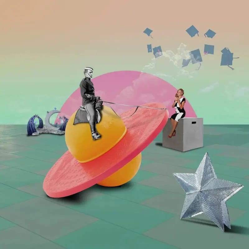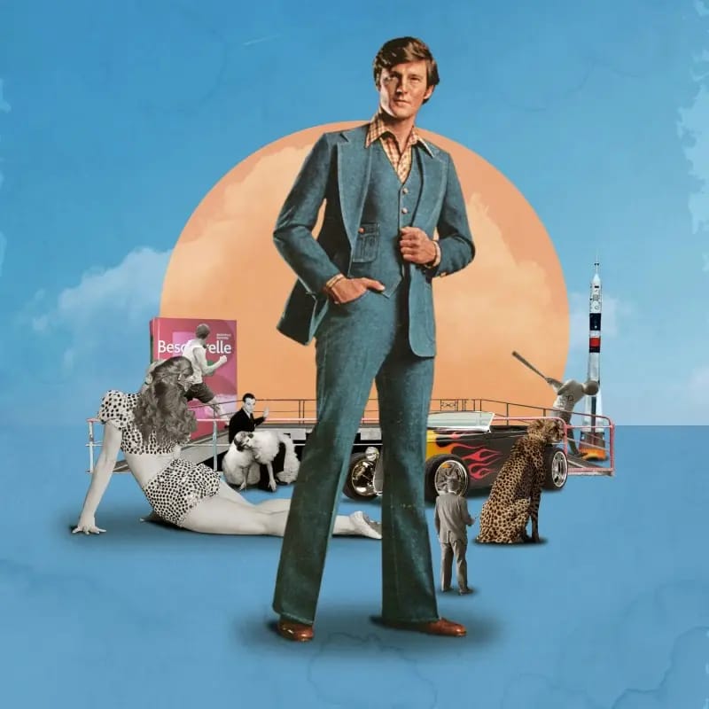 We see vintage imagery combined with pastel backgrounds and pop-art references that feel colorful and alive. World War II planes fly overhead, as historical, fashion, and sport icons fill the scenes.