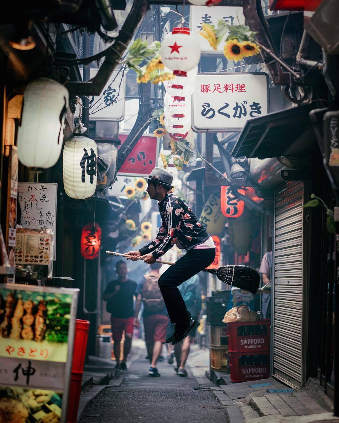 Japanese Instagram artist and photographer Halno Kujiraoka has a fun and inspiring series of his travels, all taken aboard a broomstick, floating in midair. It’s a clever and endearing concept, and his dedicated (and prolific!) series takes us all over the world.