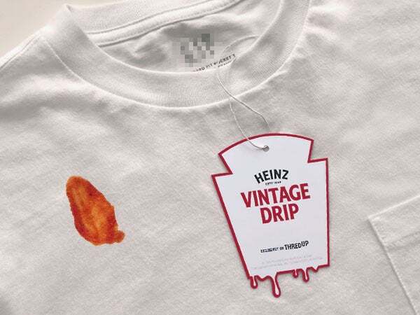 That’s the line from Heinz, collaborating with ThredUP, with a line of limited edition clothing that features, you guessed it, a real ketchup stain.