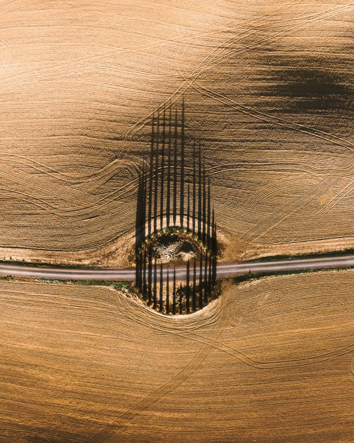 With dramatic sweeping views, and unique vertical perspectives, Nagy shows us the neatly planted fields and tall thin shadows from the Mediterranean Cypress trees.
