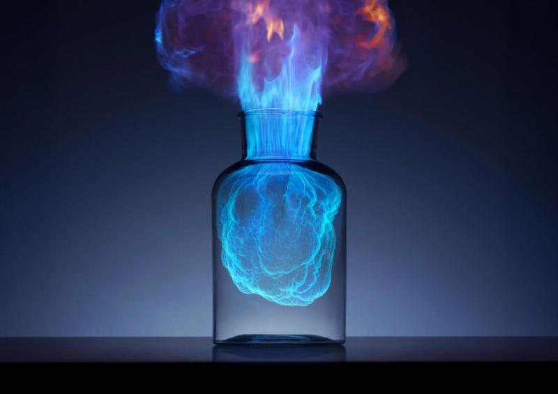 “By placing the beauty of internal combustion centre stage within delicate glass vessels, it transforms a fundamental chemical process into an artful exploration of fire, fragility, and the duality of progress.“