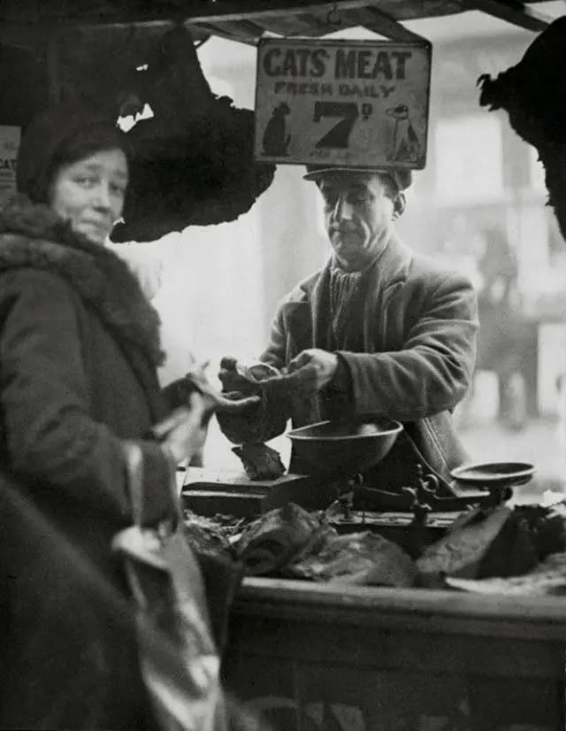 These historical photos show street vendors in Victorian London, known as Cat’s Meat Men. They would sell scraps of meat to pet owners, who would then feed it to their cats and dogs.
