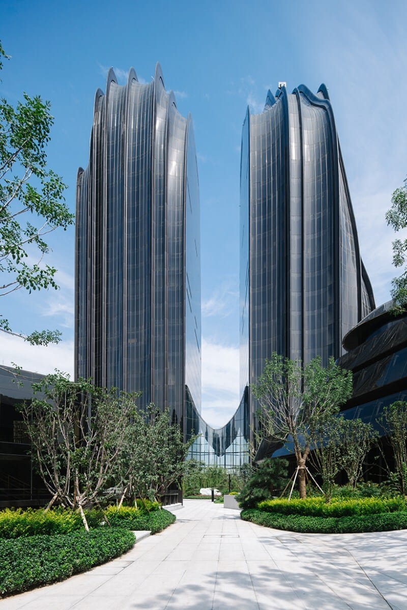 Located in the heart of the central business district, the Chaoyang Park Plaza designed by MAD Architects is nearing completion, and it’s one for the ages. Looking like something out of the year 2117, Chaoyang Park Plaza is a complex of multiple buildings that are designed to mimic the mountain cliffs and river landscapes of China. The tallest building reaches 120 meters, and is flanked by it’s siblings, with organic, undulating forms of curving glass. The buildings’ futuristic forms look like nothing else in the world of skyscrapers, and are set to make a permanent mark on Beijing’s skyline. Multi-level terraces on the top feature public gardens and a great viewing platform to peer down on the city below.