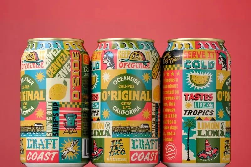 Inspired by the playful typography of local taco stands, the label features Oceanside’s iconic pier and a taco surfing on a board, inviting drinkers to explore O’side one sip at a time.