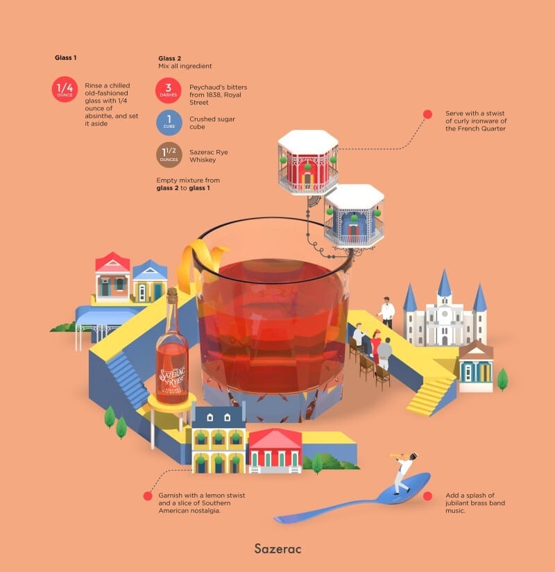 The post Classic Cocktail Recipes Told With Elaborate Infographics appeared first on Moss and Fog.
