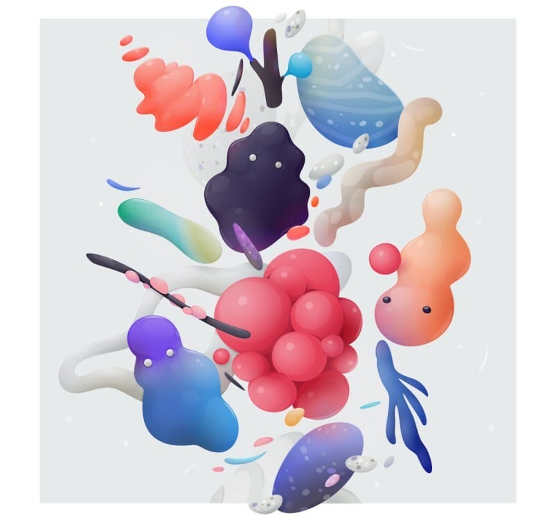 Russian illustrator Alexandra Zutto has a cool sense for color and form in her whimsical drawings. Bubbly and full of expression, the work has a soft color palette and a very fluid, kinetic feel to it. Layered shapes mingle with wispy cloud-like features, creating a casual chaos that still feels inviting and pleasing to the eye. Nice work, via Behance: