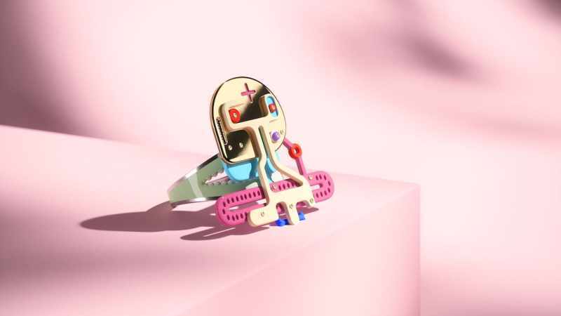 With earrings, pendant, and ring designs, Yoom’s work feels hyper-modern and fresh, and introduces the notion of jewelry as a buildable, endlessly customizable art.