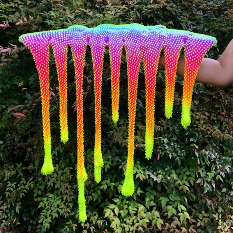 Artist and sculptor Dan Lam has a wild series of blob-like forms that look like some type of alien slime, or a radioactive ooze that escaped it’s housing. Made from polyurethane foam and epoxy resin, she adds hundreds of acrylic spikes by hand, adding a fun and wicked touch to these wildly colorful sculptures. Her work will be on display in Portland Oregon this fall, and in Jackson Hole, Wyoming, later this winter. Via Colossal: