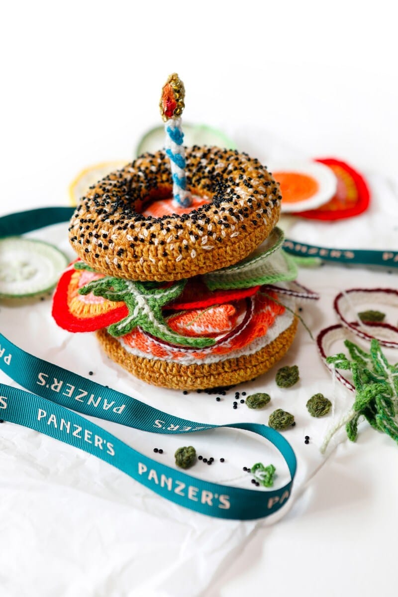 From a loaded bagel to a whole pastry window spread, her crocheted wool pieces are amazingly realistic, given the material of choice. You can purchase her pieces on her online store, and amaze and maybe trick your friends. Via Colossal: