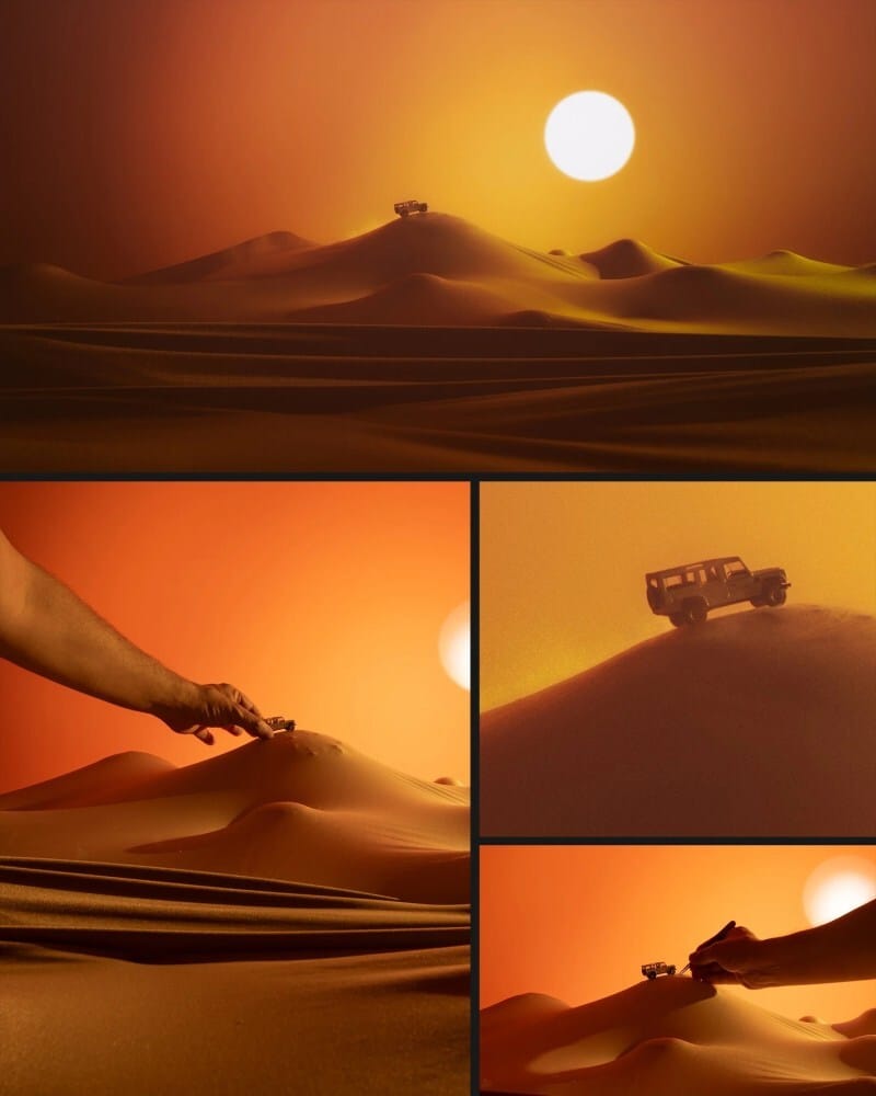 Snow-covered roads, fog-heavy landscapes, lone cars paused in silence. Nothing is full scale, yet everything feels convincingly real.
