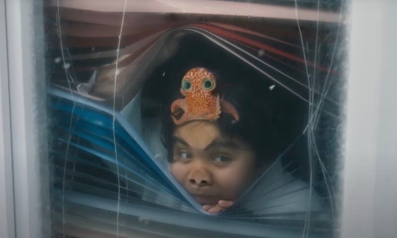 Disney has a new short-film available on their Disney+ streaming platform, featuring a boy and an adorable octopus friend. Directed by Taika Waititi, the 4-minute film is charming, and tells the improbable story of a boy who encounters a young octopus, who attaches himself to the boy’s head.