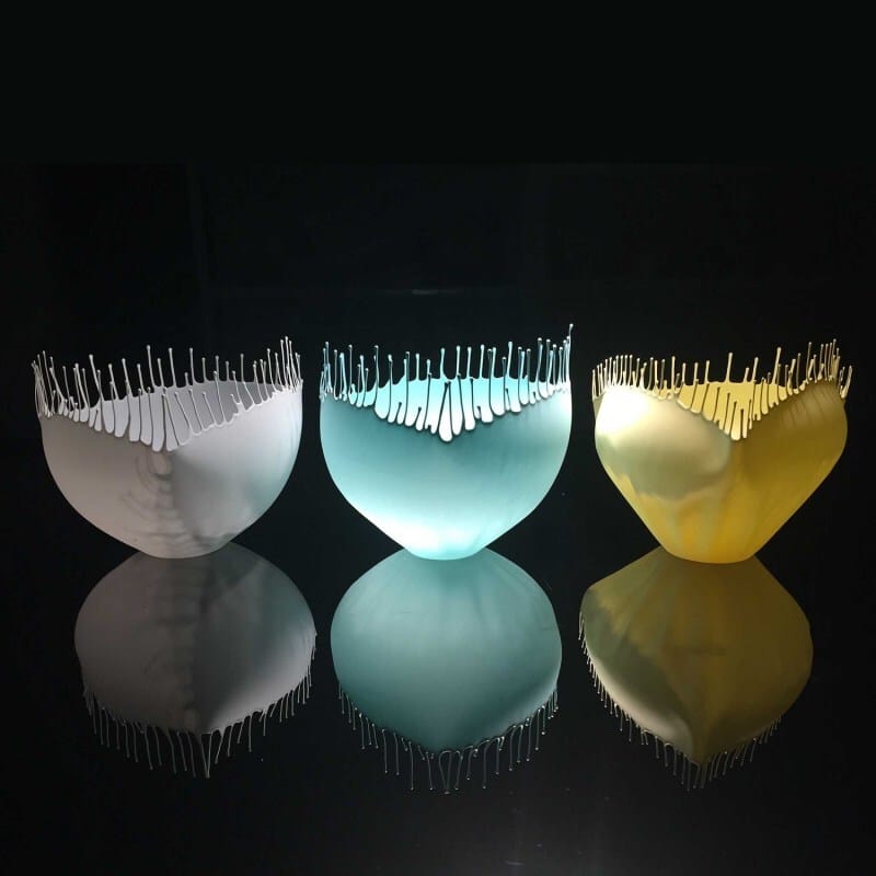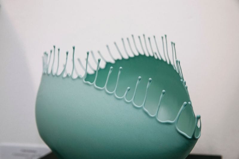 Using very thing ceramics and a dramatic inverted drip look, sculptor Bian Xiaodong has created a series of bowls that resemble the spiny mouth of a Venus Fly Trap.