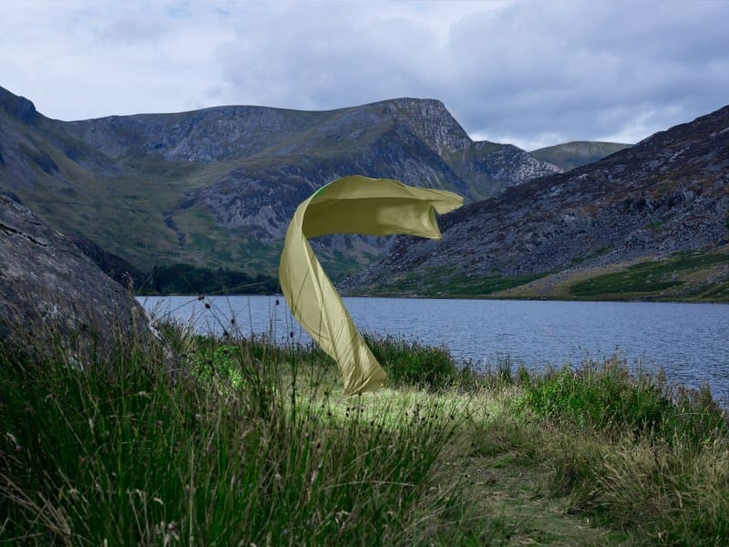 Using brightly colored fabric, anchored in the ground against a series of dramatic natural backdrops, he’s created images that are moments in time. Photographed within Snowdonia National Park in Wales, which is gorgeous in it’s own right.