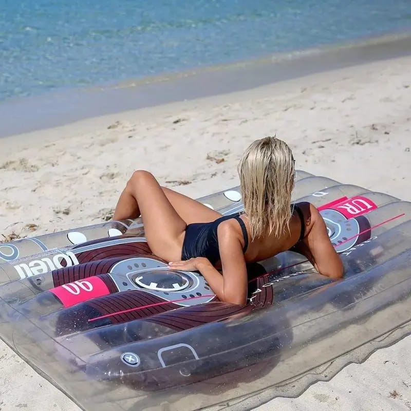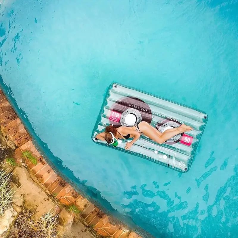 With both a classic cassette and mix-tape variety, the floats are realistic in shape and graphics, sure to give fellow swimmers a double take on the beach or at the pool.