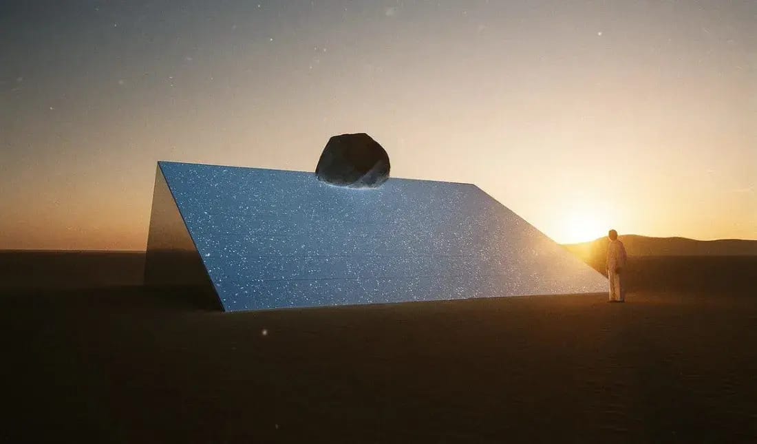 In the desert near El Paso a massive mirror array transforms sand and stars into a shifting nocturnal landscape, equal parts echo and illusion.