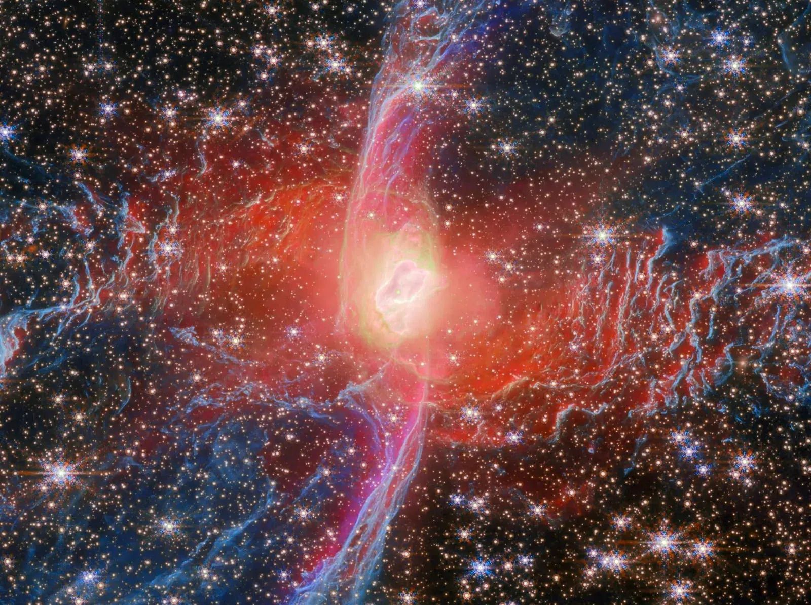 The newest image from the James Webb Space Telescope reveals the Red Spider Nebula in astonishing clarity. Located near the constellation Sagittarius, the nebula is estimated between 3,000 and 8,000 light years from Earth.