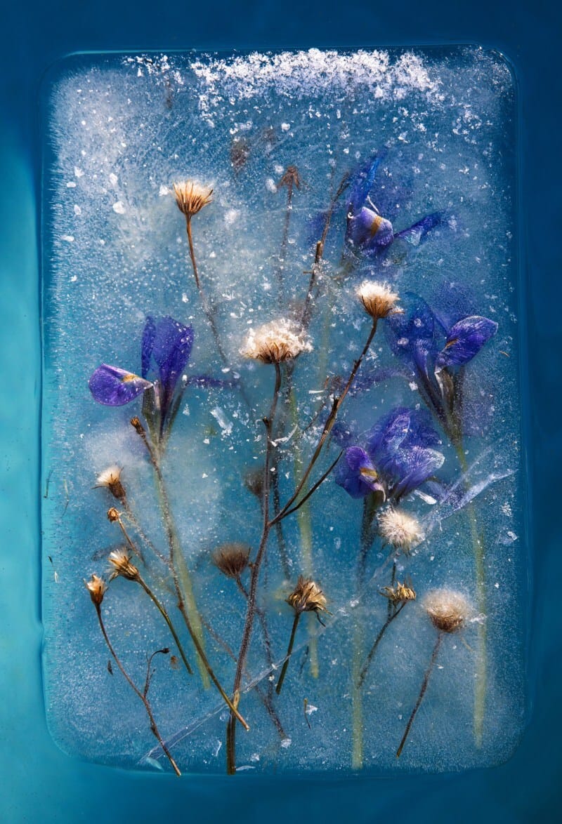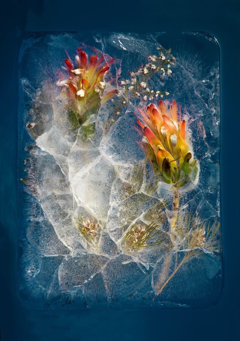 Wanting to creatively showcase some of the flora around their native Capetown, South African photographers Bruce Boyd and Tharien Smith froze flowers in blocks of ice and captured pristine images of them underwater. The result is a unique snapshot, a paused moment that preserves the fresh vibrancy of the blooms.