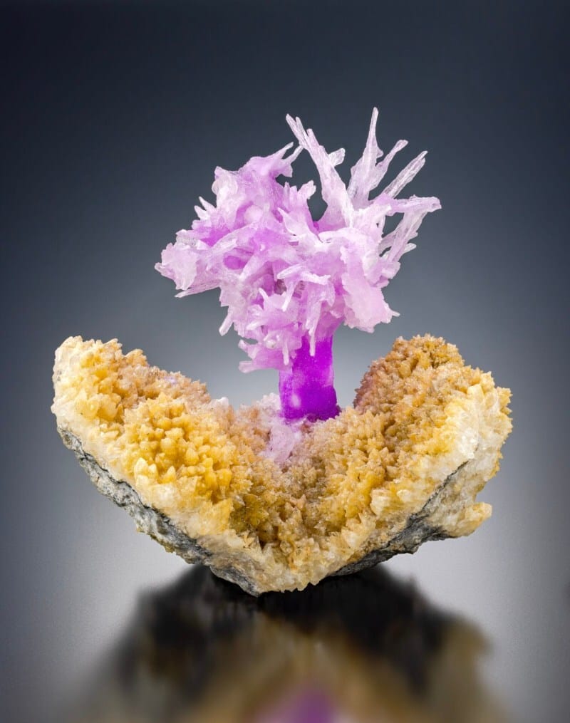 Cobalt-bearing aragonite from Baiyangping ore field, Yunnan, China. Courtesy of Mond Chang