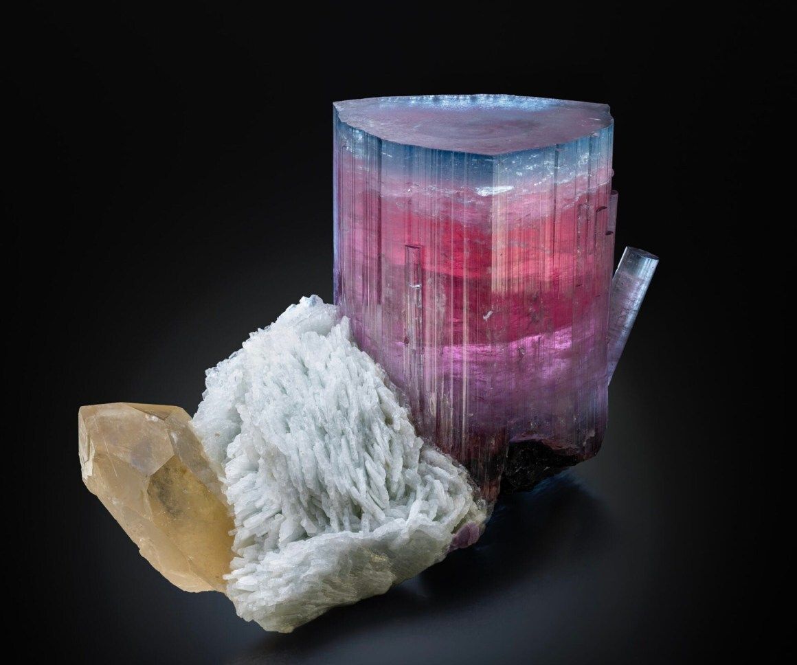Left: Vanadinite from Mibladen, Morocco. Courtesy of Mond Chang. Right: Multi-colored Elbaite from Barra de Salinas, Minas Gerais, Brazil. Courtesy of GetGemstoned