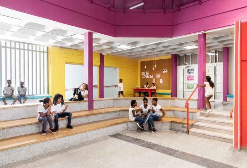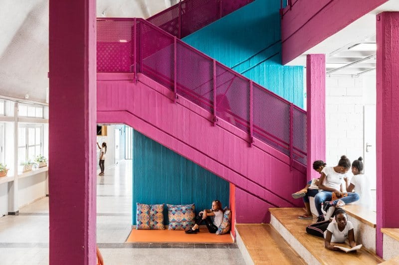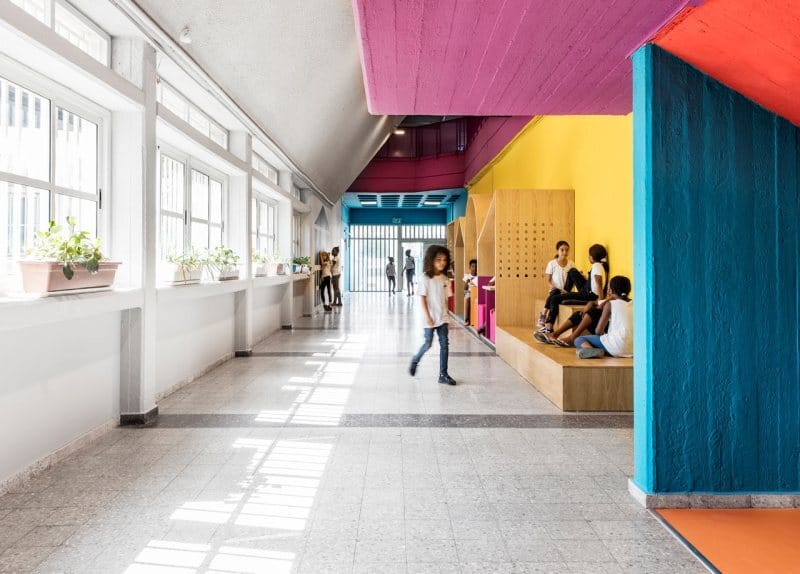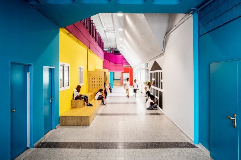 Located in Tel Aviv, this beautiful and clever redesign of a 1960s school makes itself a perfect kid-oriented place for refugee children.