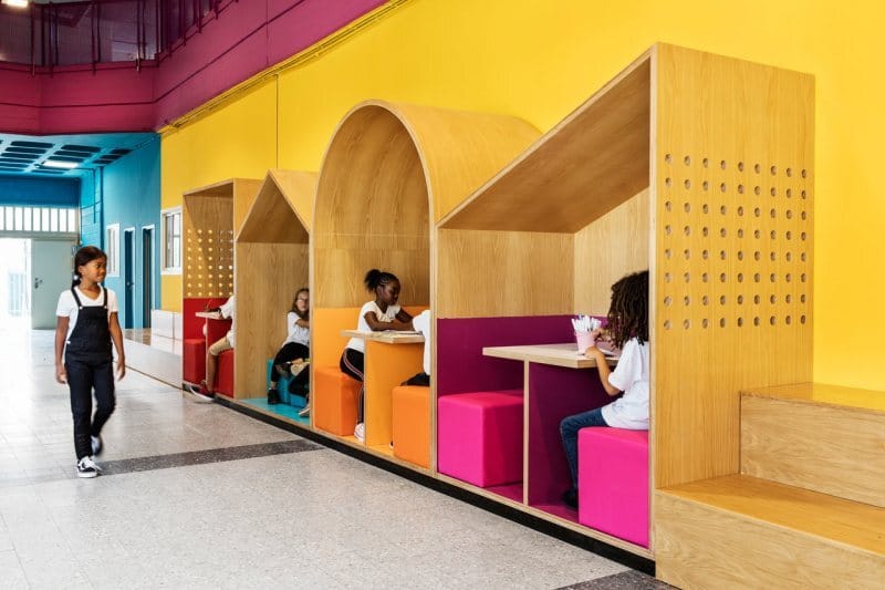 Renovated by Ayelet Fisher and architect Chen Steinberg Navon of Steinberg Fisher, the school’s innovative spaces are thoughtfully designed and laid out to allow for a great level of interaction and flexible use. We love the use of shape and color, which are both modern and approachable.