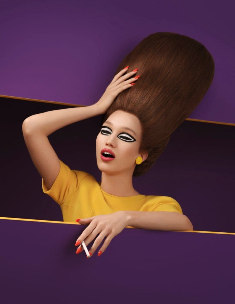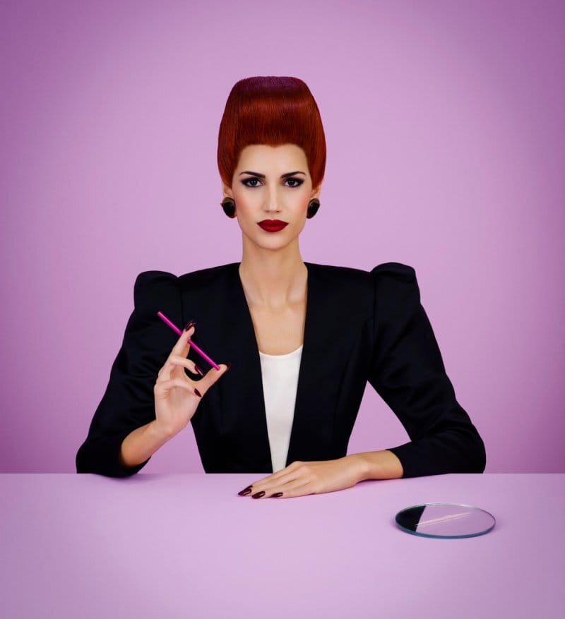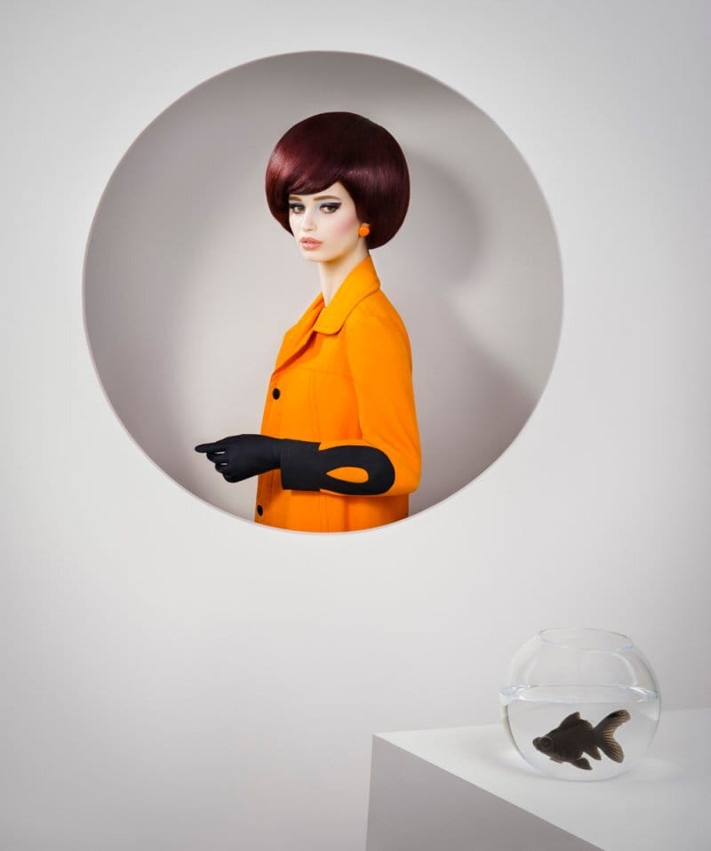 The pop-art sensibilities are enhanced by the sculptural/geometric hairdos, and some minimal set pieces that further push the concept. Via InspirationGrid: