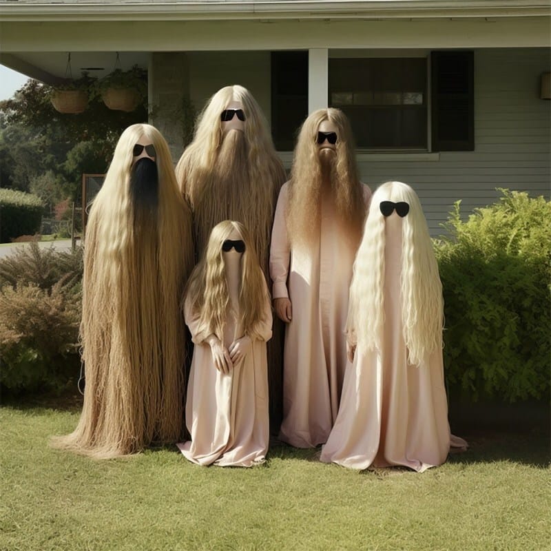 We especially love it when the daughter’s 70’s mustache matches the father’s. Priceless. These are artificial moments that will last a lifetime. Or longer, depending on how long AI allows humanity to survive.