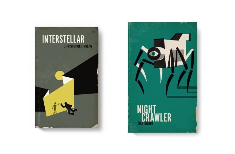We love the way he’s embodied the essence of the films into an old book design, capturing the vintage style of paperbacks and hardcovers from decades past. He even adds details like worn pages and creases, adding to the realistic nature of the books.