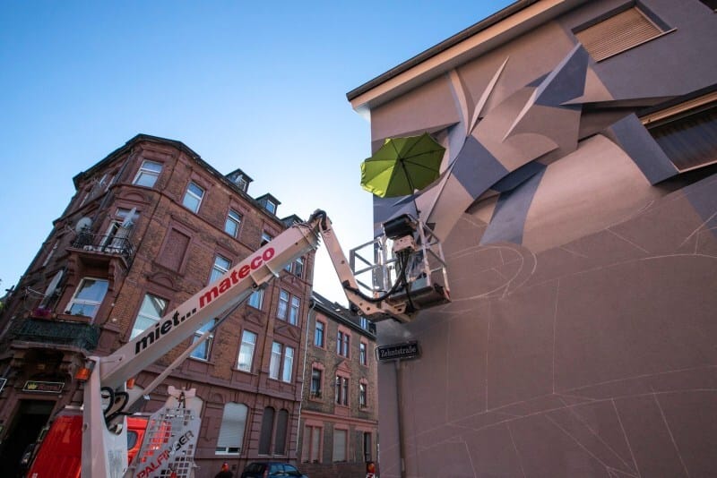 Meant to obscure the form and shape of regular buildings, his work is expertly created to give square forms a feeling of artificial depth and irregularity. Created on the streets of Mannheim, Germany, Peeta gives an M.C. Escher-like feeling to the ordinary city buildings. Great work, making mural art seem alive and new. Via Colossal: