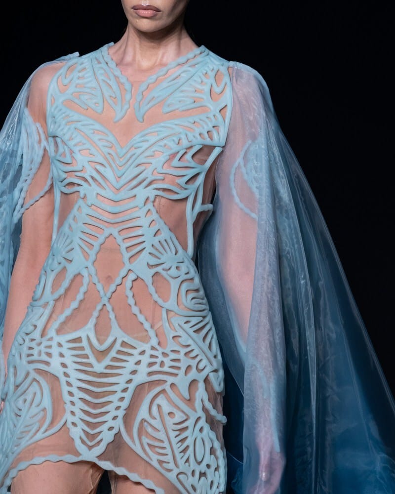 Dubbed the “living dress,” it’s woven from millions of bioluminescent microalgae, each thriving within a custom liquid matrix.
