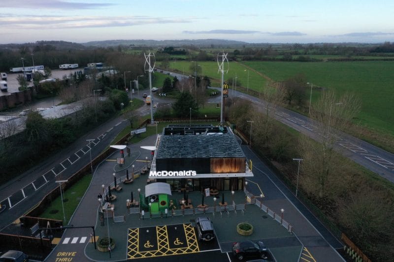McDonald’s have pledged to make their entire chain of restaurants better for the environment. In the UK, they have opened some restaurants that claim to be net zero from an energy standpoint.