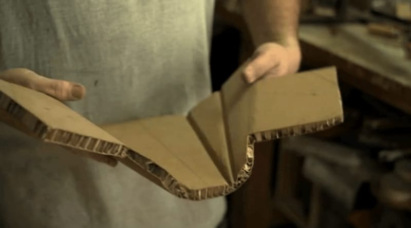 Here Gafni is describing the ‘origami-like’ folding that results in a surprisingly strong, durable cardboard frame.